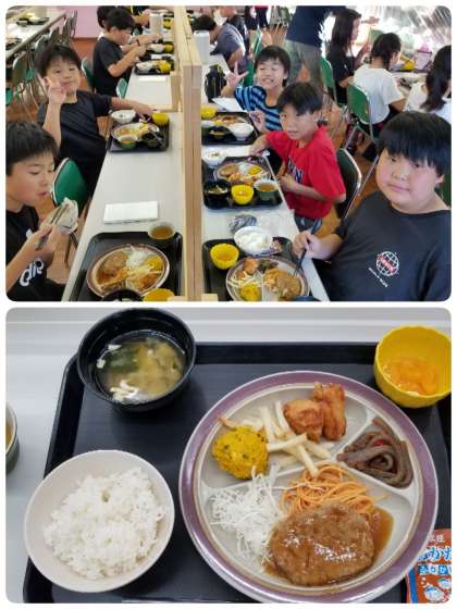 夕食です。メニューは和風ハンバーグ&から揚げです(^^♪