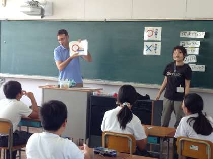 今年度より、大阪市教育委員会が任用する大阪市外国人英語指導員(C-NETと呼びます)が、各小中学校に派遣され、外国語活動や英語の授業を教員とともに行うことになりました。本校にも、毎週金曜日に派遣されることになりました。先週は、中学校の授業に入っていただきました。そして、今週、6年生の授業をCーNETの指導員の方と一緒に行いました。ネイティブスピーチングを聞いて、子どもたちもうれしそうに学習していました。今回の授業は、「けんだま」や「おてだま」といった日本特有のおもちゃも取り入れながら、「I can 〜」「I can not 〜」の学習をしました。また、給食の時間には、1年生がとってもC-NETの指導員の方に興味津々。さっそくコミュニケーションを取りに行っていました。