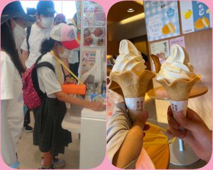 いや、今日は暑いから、ソフトクリームじゃけん!