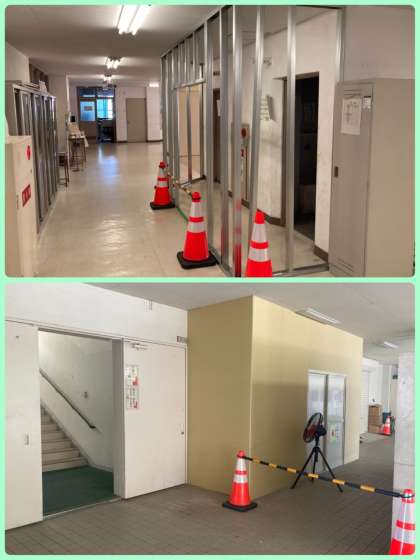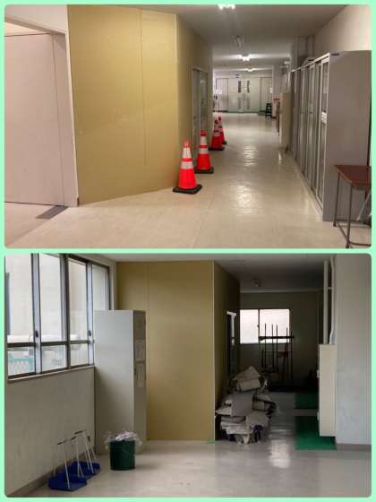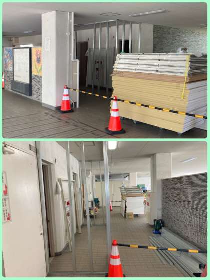 現在、やたなか小中一貫校はトイレの改修工事に入っています。まず最初は、南館のトイレと、北館の東トイレです。配管の加減で多少の違いはありますが、それぞれの場所に多目的トイレも設置予定です。