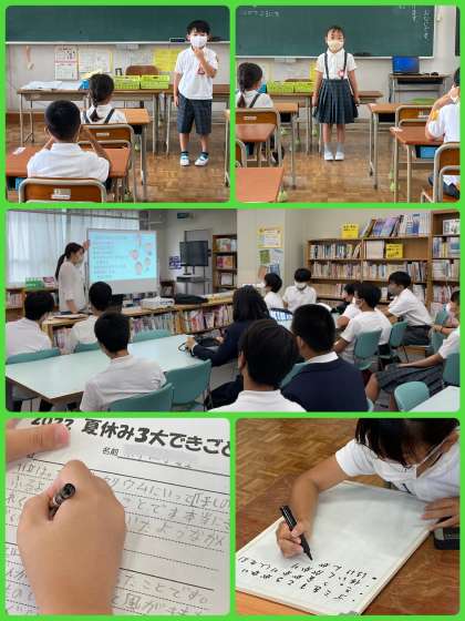 各クラスに戻ってからは、夏休みの宿題の答え合わせをしたり、2学期の係を決めたり、そうじをしたりしました。これから、たくさんの行事が控えています。体調管理とともに、けじめをつけて学校生活を送ってほしいと思います。