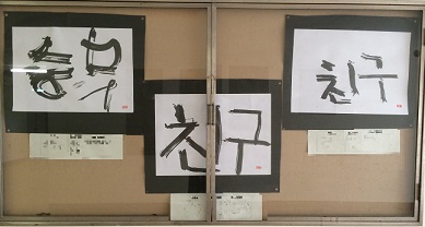 やたなか小中一貫校2階、3階の掲示板に、今、書道作品が掲示してあります。小学6年生の書、中学生の書、ハングルの書。ぜひ、ご覧になってください。