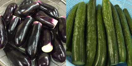 順番に赤ピーマン,なす,きゅうりです!