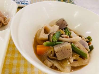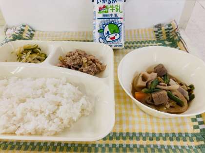 さといも、れんこん、しめじ、こんにゃくなどが入ったかみ応えのある煮ものでしたが、しっかりとよくかんで、秋の味覚をおいしくいただきました。