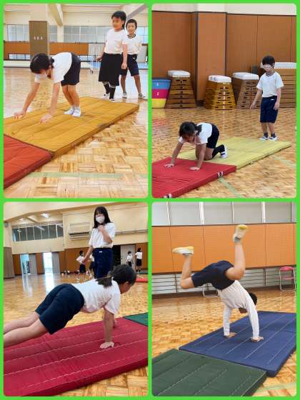 これから、側転や連続技に挑戦していきます。自分の身体の動かし方を工夫し、感覚をつかみながら取り組んでほしいです。