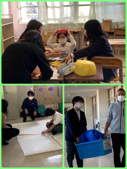 11月2日(水)の文化祭に向けて、7年生は取り組みを進めています。舞台で使用する小道具や衣装作り、背景幕作成や演技練習など、クラスで協力して活動しています。