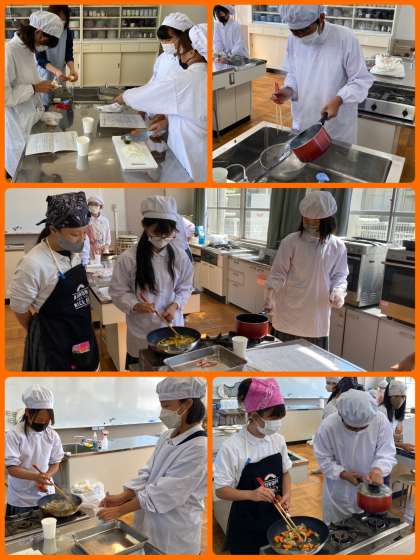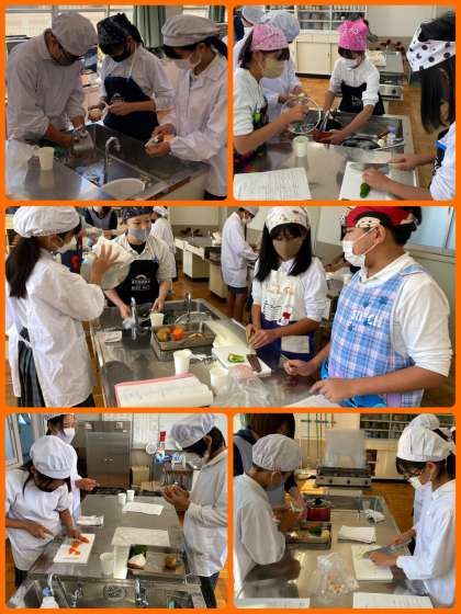 6年生は、小学校では最後の調理実習にのぞみました。野菜炒めと粉ふきいもを作りました。班で協力して、調理から皿洗いまで分担して進めました。