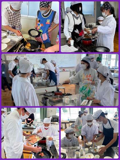 9年生は調理実習で、豚の生姜焼きと魚のボイル焼きとすまし汁を作りました。さすが9年生という感じで、手際よく班で協力して調理することができました。
