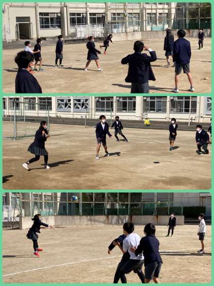 5年生は、全員遊びでドッジボールをしました。今日は4面ドッジボールで、四方八方からボールが飛び交う素早い展開は、とてもスピード感がありました。