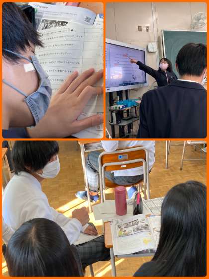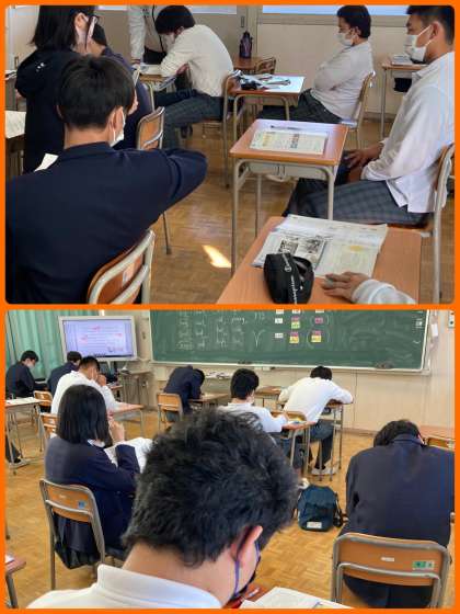 9年生は英語で、反対語を学んだり、先行詞、主格、目的格の関係を確認したりしました。様々なパターンの問題に取り組んでいます。