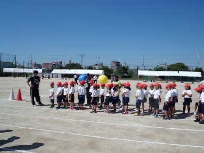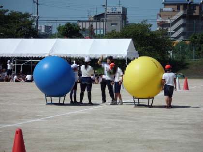 今年の体育祭でも、1年生から9年生まで全員による「大玉おくり」を行います。1年生から9年生までが、赤団と白団にわかれて競います。大玉を早く送ったほうが勝ちです。2回戦行います。今日は、みんなで動きの確認をしました。さあ〜本番は・・・。