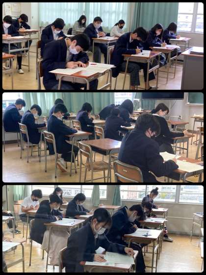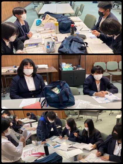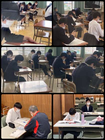 昨日から中学部は2学期末テストを行っています。上の写真はテストを受けている様子で、下の写真は、前日まで行われた放課後の自習教室に取り組んでいる様子です。各教科、重要事項やキーワードを反復して確認したり、先生に助言をもらったりしてテストの日を迎えました。