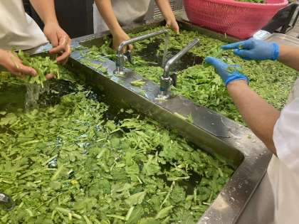 土などが残っていないか、ていねいにチェックしながら洗います。