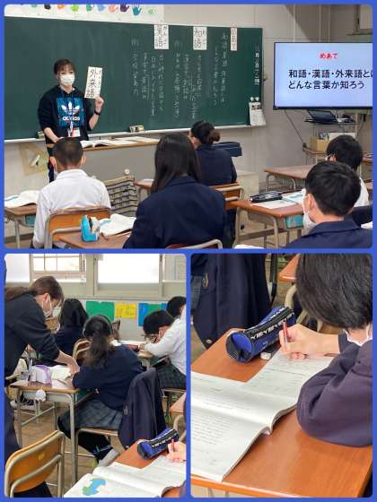 5年生は国語で、和語・漢語・外来語の由来を理解し、区分けしていきました。和語と漢語の文の印象の違いについて考えたあと、友達と協力しながら、教室の中の和語・漢語・外来語を探していきました。意外な発想に共感しながら、確認していきました。