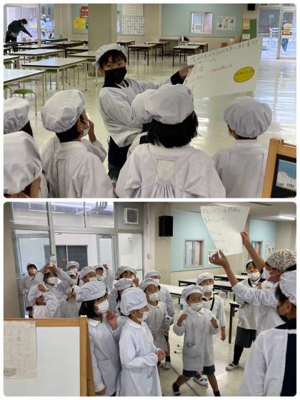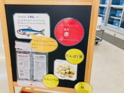 「給食カレンダー見てきたから〜!」と自信満々。大正解の3年生でした。日本で最も多く出回っているいわしは「マイワシ」です。大きいものは25cmほどになります。いわしには、主に体をつくるもとになるたんぱく質やカルシウム、鉄などが多く含まれています。給食では、煮魚のほか、フライ、つみれ汁、ごまめ、ミニフィッシュなどで登場します。だしをとるために、にぼしを使うこともあります。