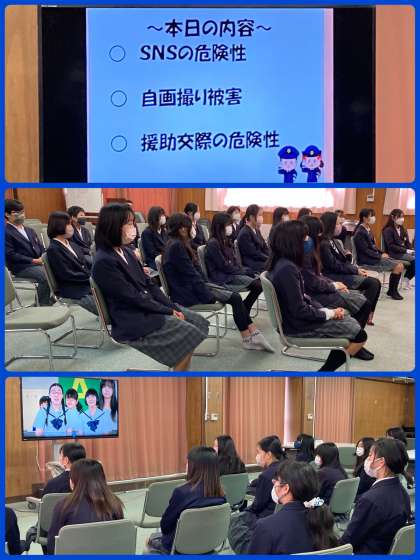 6年生は東住吉警察署の少年係の方々に来ていただき、非行防止教室を行いました。SNSの危険性や、自画撮り被害に実際にあった例などをもとに、これから中学校に進学していくうえで特に気をつける必要があることを話していただきました。