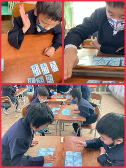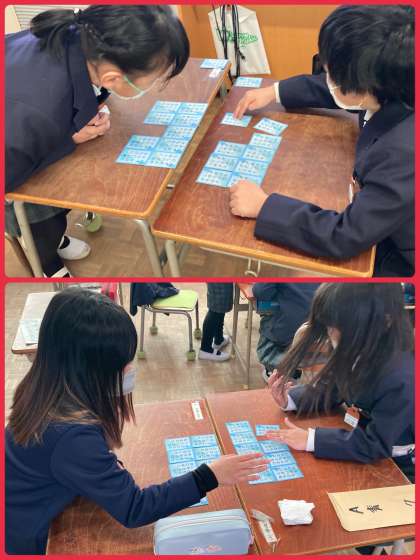 2年生が百人一首に挑戦しました。読み手の先生の上の句を聞き、素早く札を取っていきました。初めてのチャレンジでしたが、カルタの要領を活かしながら進めていきました。