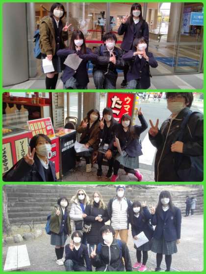「水の都コース」「歴史の街コース」「商業の街コース」に分かれて、7年生はフィールドワークをしました。指定された施設やポイントを、各班で公共交通機関を利用しながら課題に取り組みました。事後学習としては、タブレット端末で撮影したものをもとに先日の学習参観でプレゼン発表しました。