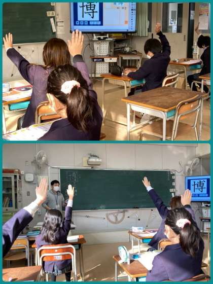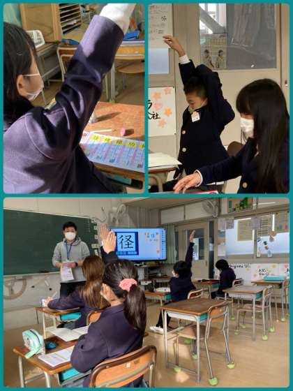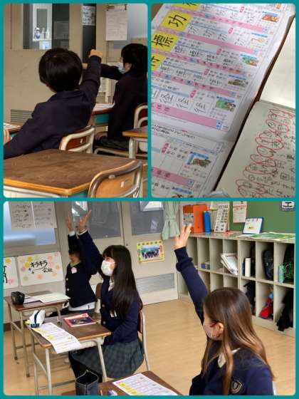 4年生の新出漢字の学習の様子です。筆順から、とめ・はらいの位置までしっかり確認しています。4年生は、小学校で一番たくさん新出漢字がある学年です。復習して、来年度の漢字検定にも備えましょう。