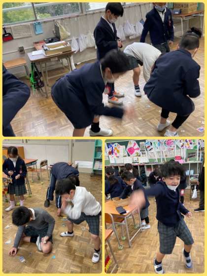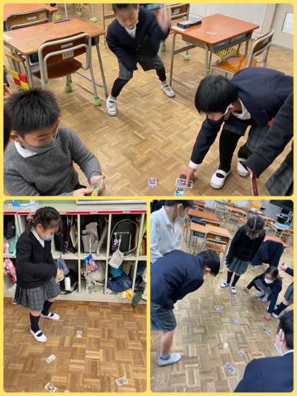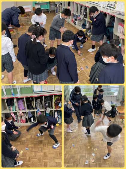 1年生が「めんこ」に挑戦しました。やっていく中で、コツを覚えて、パーンと響く音を鳴らしながら楽しんでいました。裏返った時は、とてもうれしそうでした。
