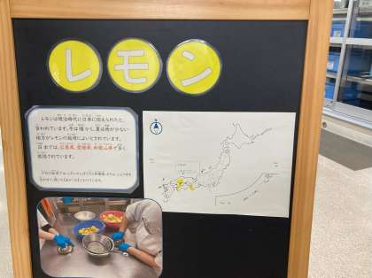 レモンは明治時代に日本に伝えられたと言われています。冬は暖かく、夏は雨が少ない地方がレモンの栽培によいとされています。日本では、広島県、愛媛県、和歌山県で多く栽培されています。今日のレモンは、広島県から届きました。