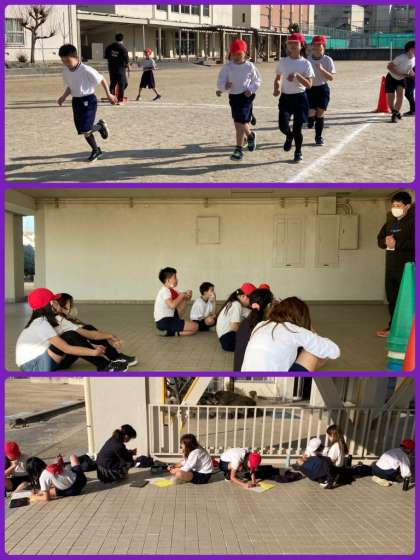 毎回ふり返りの時間を大切にし、次へのステップに進みました。来年度5年生になると、マラソン大会の走る距離も増えます。年間を通して体力が向上していくように、様々な体つくり運動を続けていきましょう。