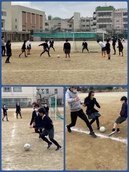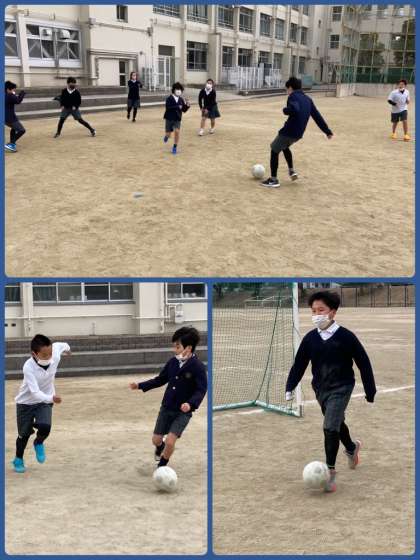 休み時間に運動場を見てみると、5年生が大人数でサッカーをしていました。サッカーを習っている子も多く、みんなにパスを回したり教えてあげたりしながら遊んでいる様子です。多くの子がボールに触れる機会があり、とても楽しそうでした。得点が入った時には、大きな歓声があがっていました。