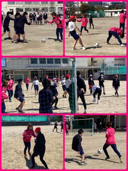 6・7・8年生はセレッソ大阪の堺レディースの方々に、サッカーを教えてもらいました。基本的な動きからミニゲームまで、協力して楽しくのぞむことができました。選手とペアを組んだり、同じチームでパスをもらったりと、貴重な経験になったと思います。