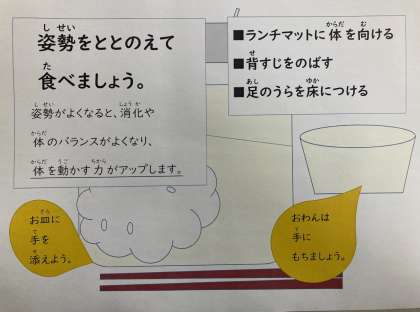 おはしの持ち方、食器の並べ方、姿勢を意識することで、食事がしやすくなります。お皿ピカピカ名人がたくさんいました。