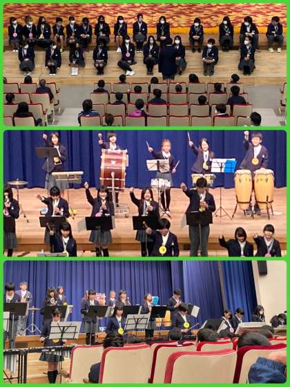 6年生は、「テキーラ」と「虹」の合奏を披露しました。さすが6年生という迫力ある演奏で在校生を盛り上げるとともに、美しい音色で思い出がよみがえるような時間をつくってくれました。
