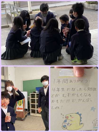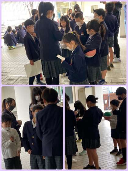 6年生は、1年間お世話になった在校生に、お別れとエールの手紙を書きました。班の一人ひとりとのエピソードを思い出しながら書き、今週のたてわり集会で手渡ししました。1年間、たてわり班を引っ張ってきた6年生からの、素敵なお手紙でした。