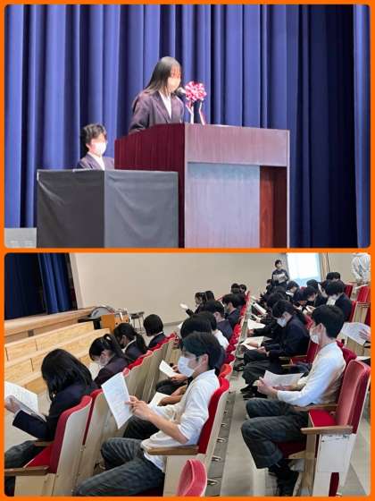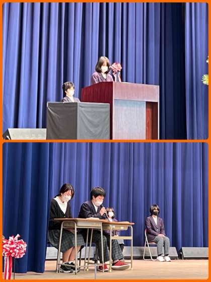 2023年度の前期生徒会選挙を行いました。立ち合い演説会では、4人の立候補者の決意表明を聞きました。さらによりよい学校にしていきたいという思いが伝わってきました。