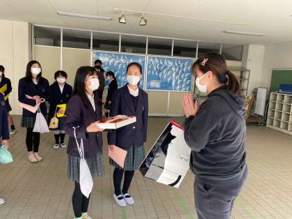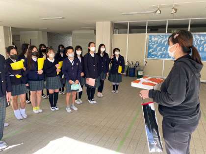 6年生は、卒業式で胸に付けるお花を、地域の特別養護老人ホームの方々に作っていただきました。本日、気持ちのこもったお花を5年生に付けてもらい、卒業式にのぞみます。