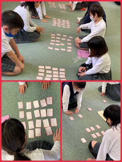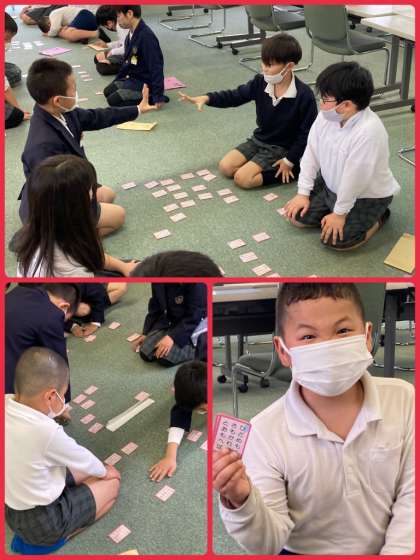 3年生は、青札編に続き、優しく札を並べてあげたり、ルールを確認してあげたりと、お兄さんお姉さんらしい姿が随所に見られました。高学年になっても、さらにたくさん覚えて次の学習につなげていきましょう。