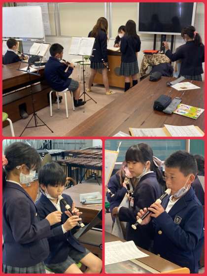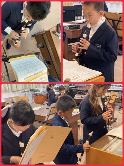 5年生は音楽の学習で、リコーダーのいろいろな曲に挑戦しています。あんぱんまんマーチ、おどるポンポコリン、千本桜など、少しずつ難易度が高い曲にチャレンジしています。