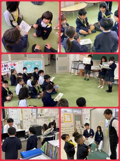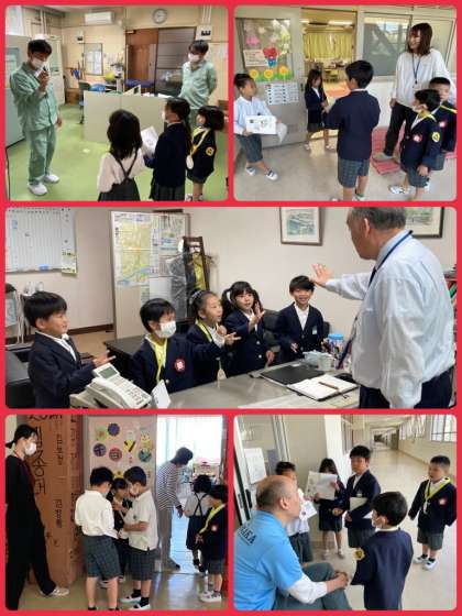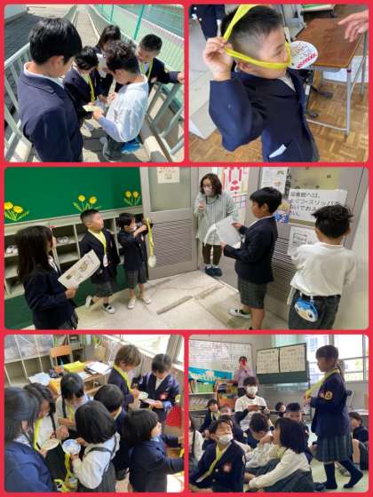 1年生が2年生に案内してもらう形で、学校探検をしました。校内の8か所を順番にめぐり、それぞれの場所で2年生と先生たちから説明を受けました。とても広い校舎ですが、はやく覚えて自分たちで移動できるようになったらいいですね。