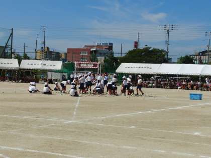 1・2年生による「玉入れ」です。赤団も白団も一生懸命競技していました。応援席では、応援団が中心となって、小中学生が一緒になって、大きな声援を送ってくれていました!!