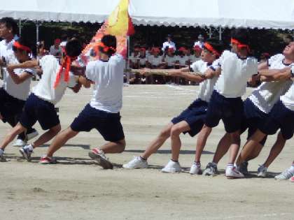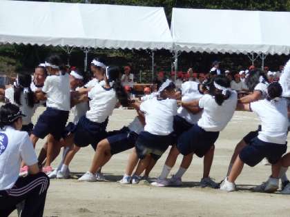 7〜9年生全員による「綱引き」〜力強さが伝わってきます!!