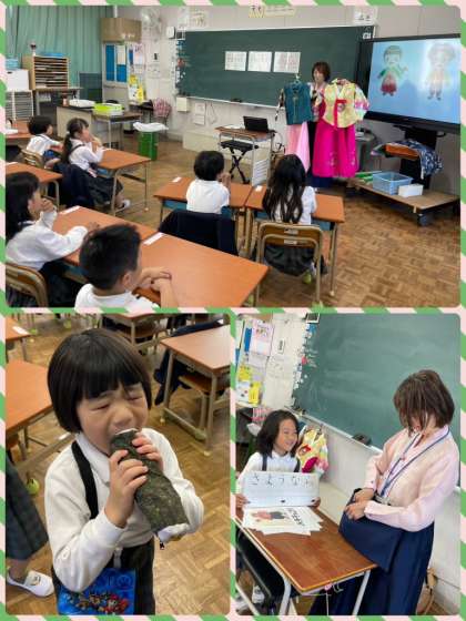 韓国朝鮮のじゃんけんを教えてもらったあとは、絵本の読み聞かせもしてもらいました。今後また水曜日のお昼休みに、チョソンの遊び体験タイムも予定しています。どんどん参加してほしいと思います。