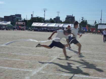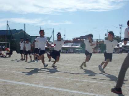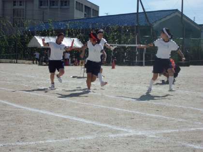 中学生によるリレー競技は、午後の部の最後を盛り上げてくれます。女子学年対抗リレー、男子学年対抗リレー。やはり、中学生の走りには迫力があり、場をピリリと緊張した雰囲気にもしてくれます。全力を出しきり、精一杯の力走している姿に感動します!!