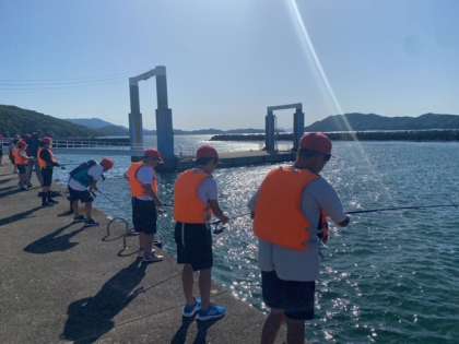 桟橋を渡ったところでみんな1列になってレッツフィッシング??