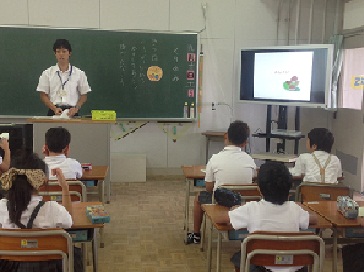 【学校公開・ICT活用公開授業】で、2年生の道徳の授業を見ていただきました。単元「くりのみ(身近にいる人にあたたかい心で接し、親切にする)」の学習をしました。資料「くりのみ」を読み、電子黒板でいろいろな場面の絵を見て、きつねさんの気持ちの変化について話し合いました。最後は、自分の生活に振り返って考えました。この学習を生かして、今まで以上に、「あたたかい心で行動する姿」が見られたら、うれしいですね!学習指導略案はこちら。(ここをクリック2年 道徳 「くりのみ(身近にいる人にあたたかい心で接し、親切にする)」