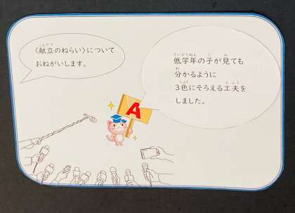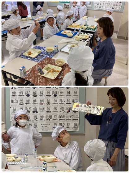 この献立のねらいは「低学年の子が見ても分かるように、3色にそろえる工夫をしました。」ということでした。