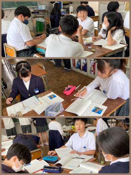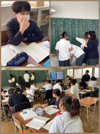 6年生は国語の説明文の学習で、各文章に書かれていた事実をまとめていきました。班で考えを出し合いながら、みんなで少しずつ黒板をうめていきました。
