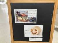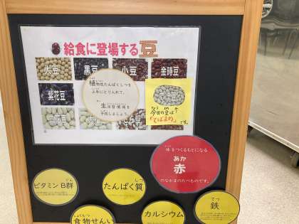 ボードを見たあと、サンプルケースをじーっと見ている1年生。「てぼ豆はどれ?」と一生懸命探していたらしく、「スープの中だけど、しずんでるかも。」と伝えると、「配る時に、まぜながら配らないといけないやつ?」と返ってきました。