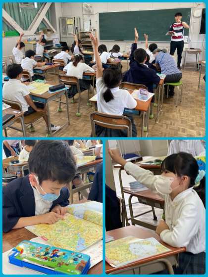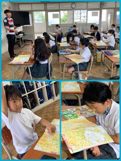 3年生は社会の学習で、地図帳を見て、大阪府の様々な地名を探していきました。教科書にのっている内容と照らし合わせながら、上手に探すことができていました。覚えなければならないことがたくさんありますが、とても意欲的に臨んでいる様子が見られます。