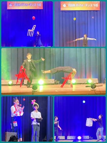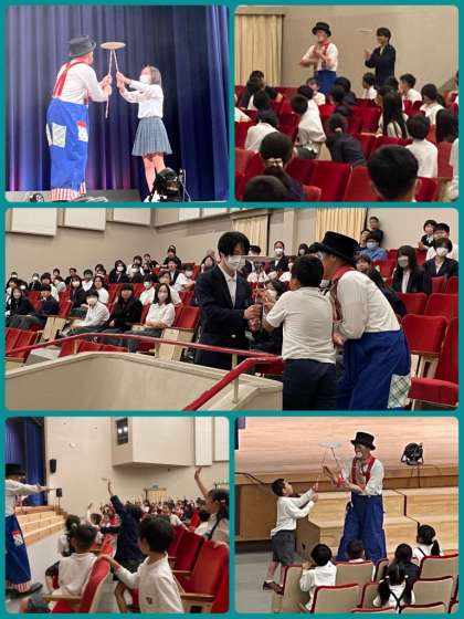 TEAMパフォーマンスラボの方々をお招きして、ミラクルイリュージョンサーカスを披露してもらいました。不思議なイリュージョンや、ジャグリングのスゴ技などが繰り広げられ、大きな拍手で盛り上がりました。児童生徒もサプライズでたくさん出演し、みんなで楽しい時間を共有できました。