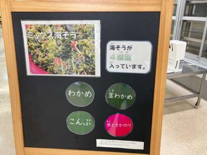 今日は、ミックス海そうを使ったサラダでした。ミックス海そうには、わかめ、くきわかめ、こんぶ、赤とさかのりの4種類が入っています。