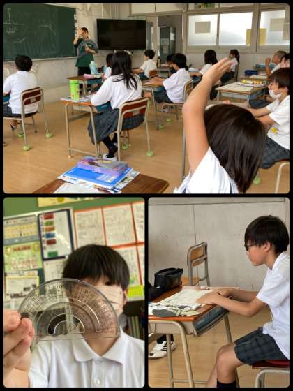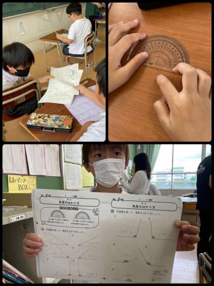 4年生は算数で、角の大きさの学習を進めています。分度器の使い方に注意しながら、これまでにいろいろな角を測ってきました。身のまわりにあるものでも、角度を意識してみると、また違った視野で見えるかもしれませんね。