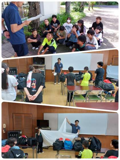 開舎式を済ませ、部屋割り、避難訓練をしました。このあとは、体育館で室内活動です。